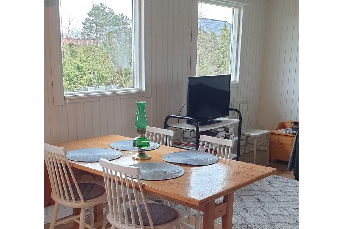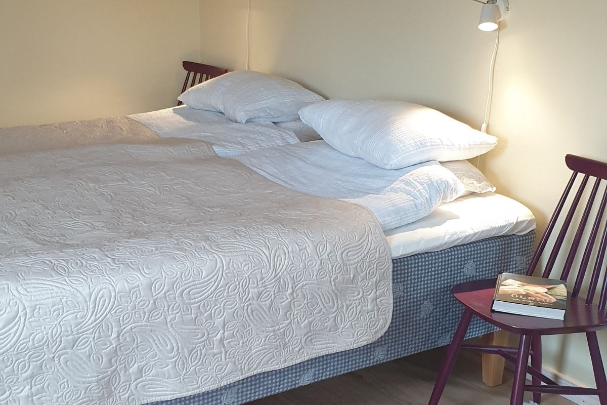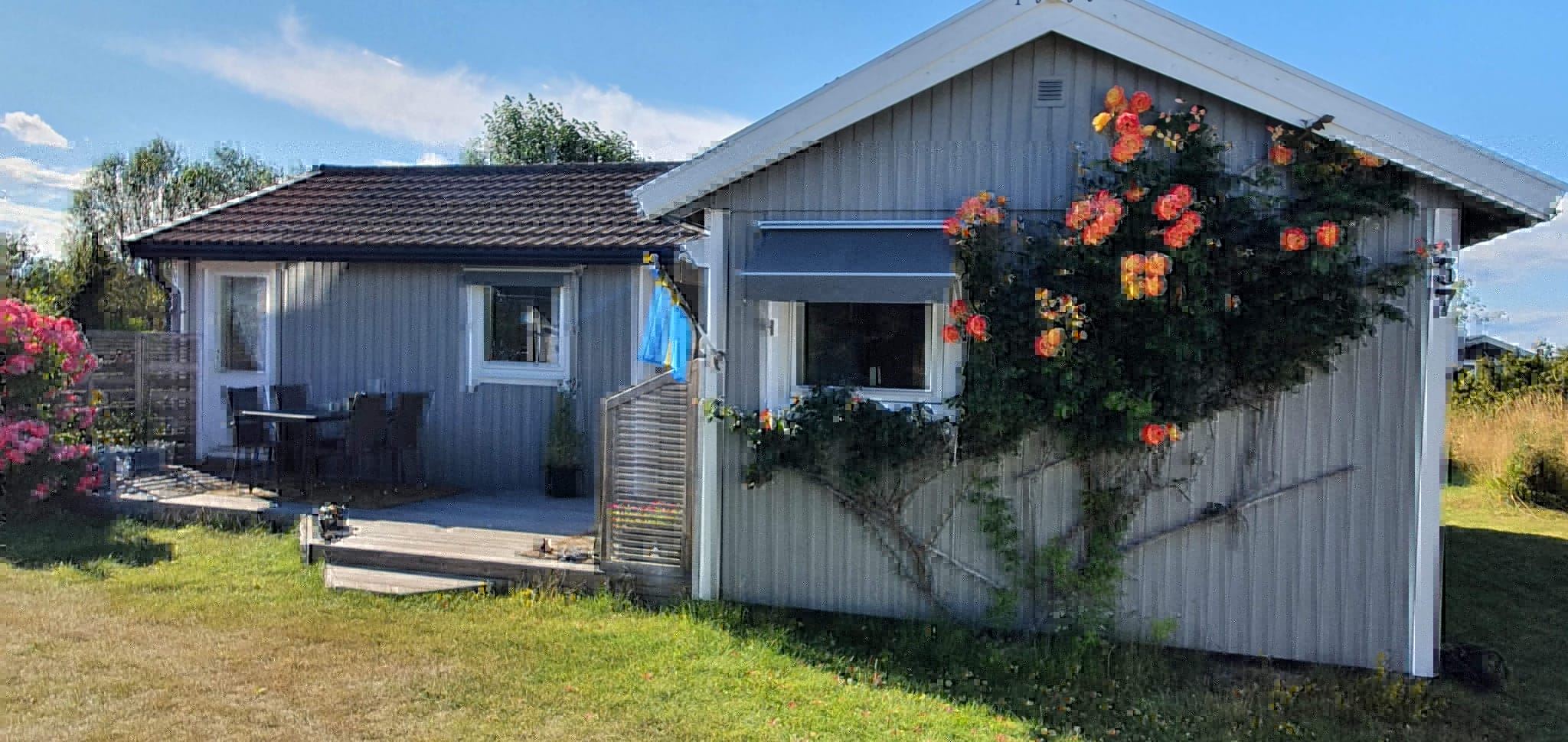 Schönes Ferienhaus in Kårehamn mit 60 m² für 6 Personen. Küche und Wohnzimmer zusammen. Die Küche ist ausgestattet mit Kühl-/Gefrierschrank (im Schrank), Geschirrspüler, Elektroherd 4 Platten, Mikrowelle, Kaffeemaschine. Vom Küchenfenster aus hat man Meerblick. Zwei Schlafzimmer, davon ein Schlafzimmer mit zwei Reisebetten, das andere Schlafzimmer mit einem Reisebett und einem Etagenbett. Im Wohnzimmer gibt es ein Schlafsofa, das bei Buchung für sechs Personen als Zustellbett dient. Badezimmer mit Dusche/WC, kleine Waschmaschine im separaten Raum auf der Rückseite des Hauses. Heizung: Luftwärmepumpe. Gartenmöbel und Grill vorhanden. Eigenes Grundstück von 1300m². Hunde erlaubt, aber keine anderen Haustiere.