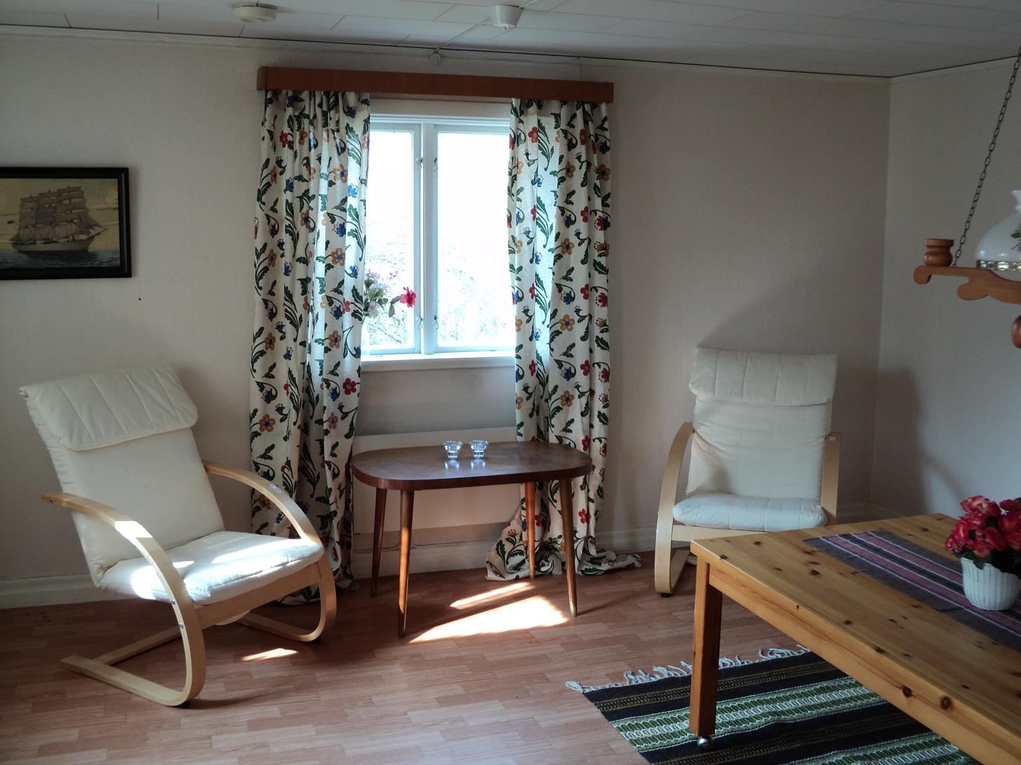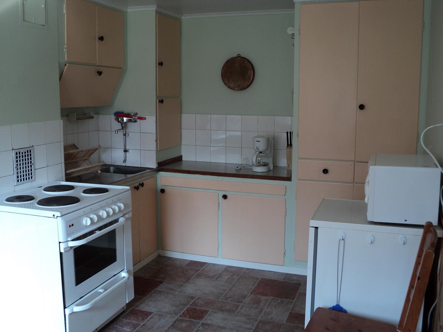 Ferienhaus: 50 m². Kleiner Küchenbereich mit unterer Spüle. Ausgestattet mit Herd, Kühlschrank, Mikrowelle, Kaffeemaschine. Wohnzimmer mit TV (kostenlose Kanäle) und 2 Betten im Schlafsofa. Ein Schlafzimmer mit Etagenbett. Frische Dusche/WC. Eigener Teil eines großen Gemeinschaftsgartens, gemeinsam mit O141002. (Sie wohnen im roten, kleineren Ferienhaus.) Aktive Bauernhöfe in der Nähe. Haustiere erlaubt. Rauchen im Innenbereich ist nicht gestattet. Grill.
